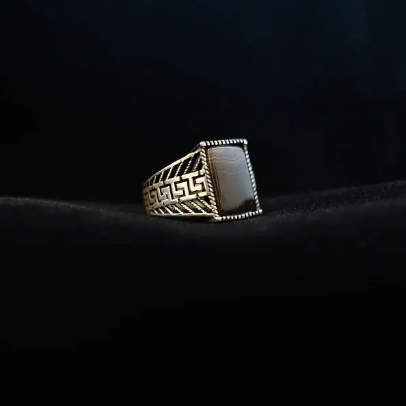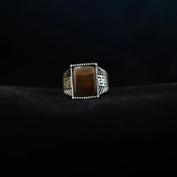 Brown Stone with lines. Set in a 925 silver ring. Size 10