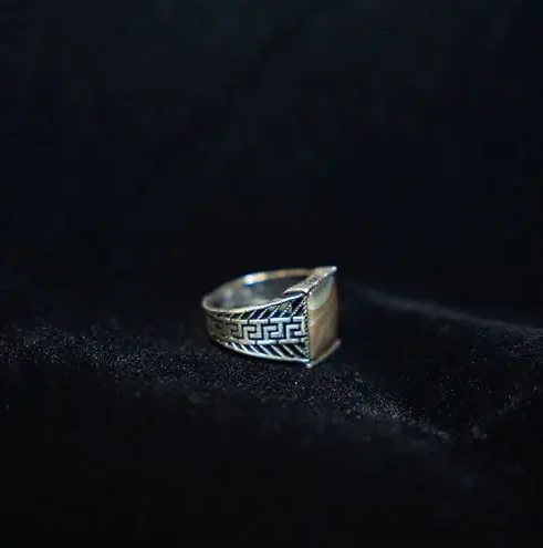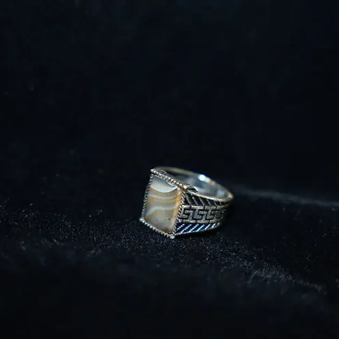 Brown stone with white lines. Set in 925 Silver ring. Size 10