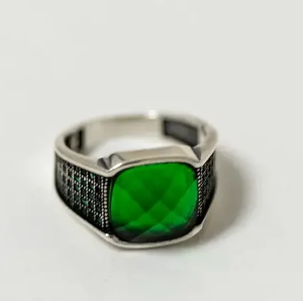 Green Aqeeq stone also known as Agate. Set in a 925 Silver Ring.
