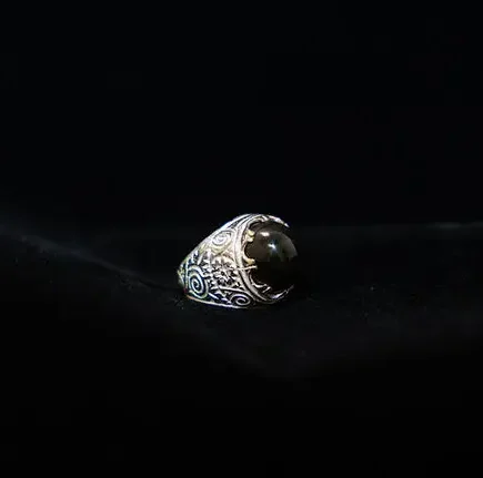 Genuine Black Agate Stone in Pure Silver. Size 11.5