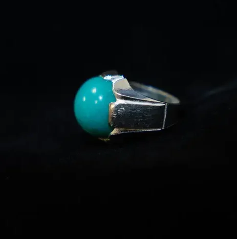 Genuine Turquoise Stone in Pure Silver. Size 10.5