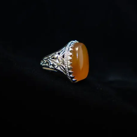 Genuine Yellow Agate Stone in Pure Silver. Size 12.5