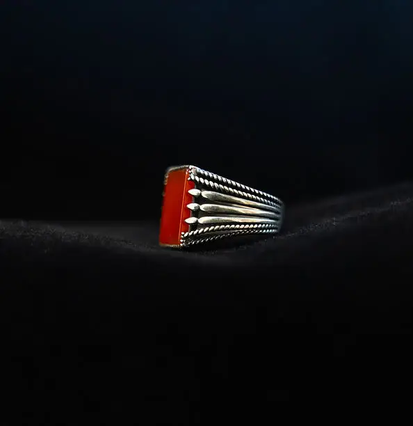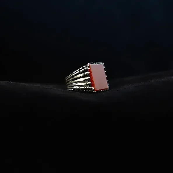 Red Stone with unique design. Set in 925 Silver. Size 10