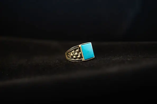 Turquoise Blue stone set in 925 silver ring with accents. Size 9.5