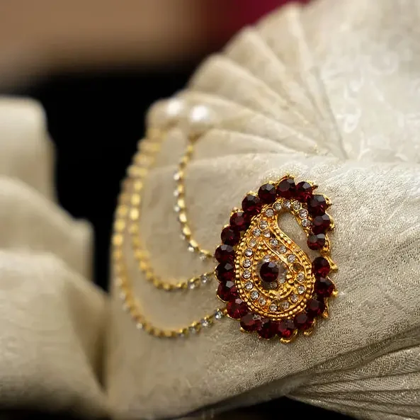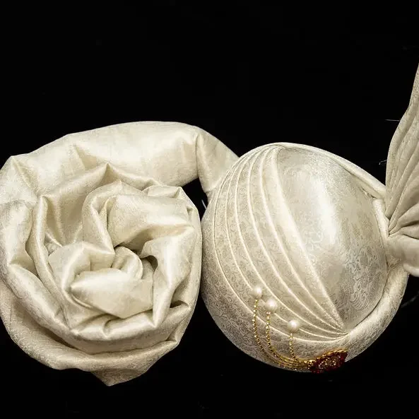 Men’s Wedding Kulla (Royal Hat) in Ivory White. Comes with an embroidered design and a bedazzled jewel piece fit for a royal look. Pairs perfectly with our Wedding Collection Outfit. Size 8" adjustable.
